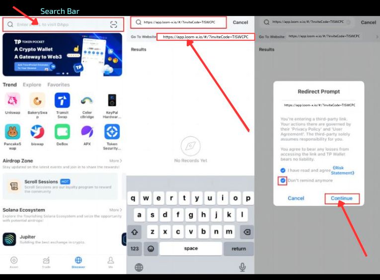 Only copy the invitation link into your wallet https://app.loom-x.io/#/?inviteCode=TISWCPC