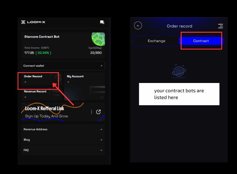 3) Choose „Contract“ to see your active contract bots