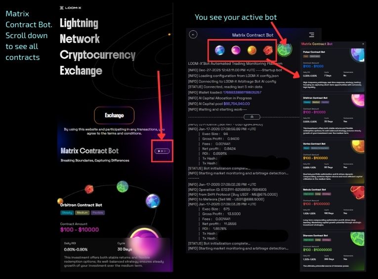 Loom-X is a crypto platform where the system runs crypto transactions automatically for you.